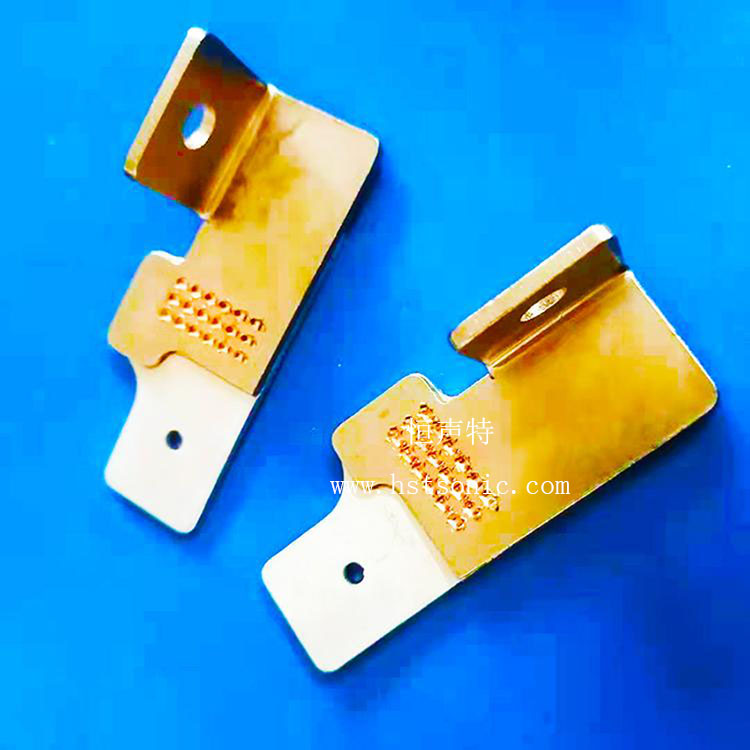 極耳超聲波焊接機焊接后的耳和片表面平整,無褶皺,背面無凸起的毛刺,焊點飽滿清晰,牢固可靠,焊點位置不破裂;