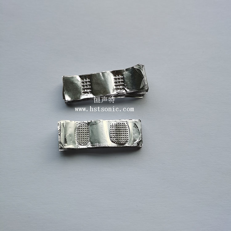 超聲波焊接機(jī)壓焊表面呈規(guī)則痕跡(可定制),背面呈網(wǎng)紋狀(非平面),壓接形狀見(jiàn)下圖。