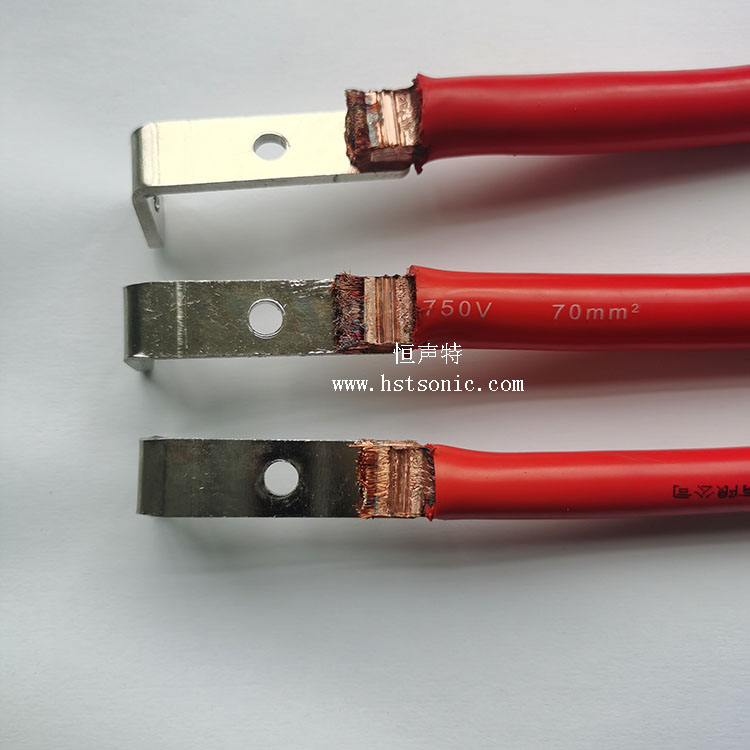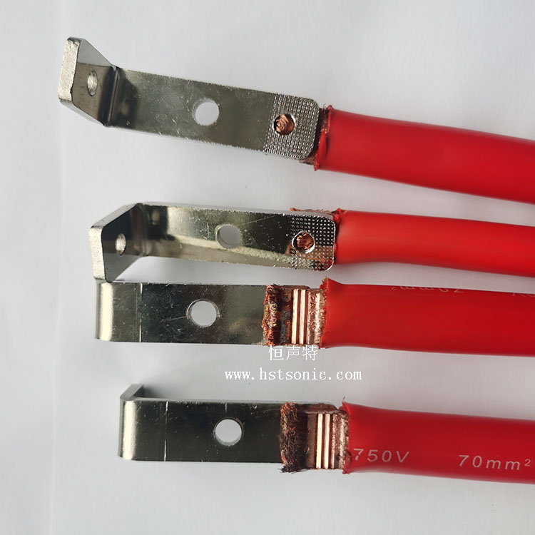 70平方電纜線與鍍鎳銅片超聲波焊接機焊接效果牢固,表面痕跡齒形均勻,無毛刺。